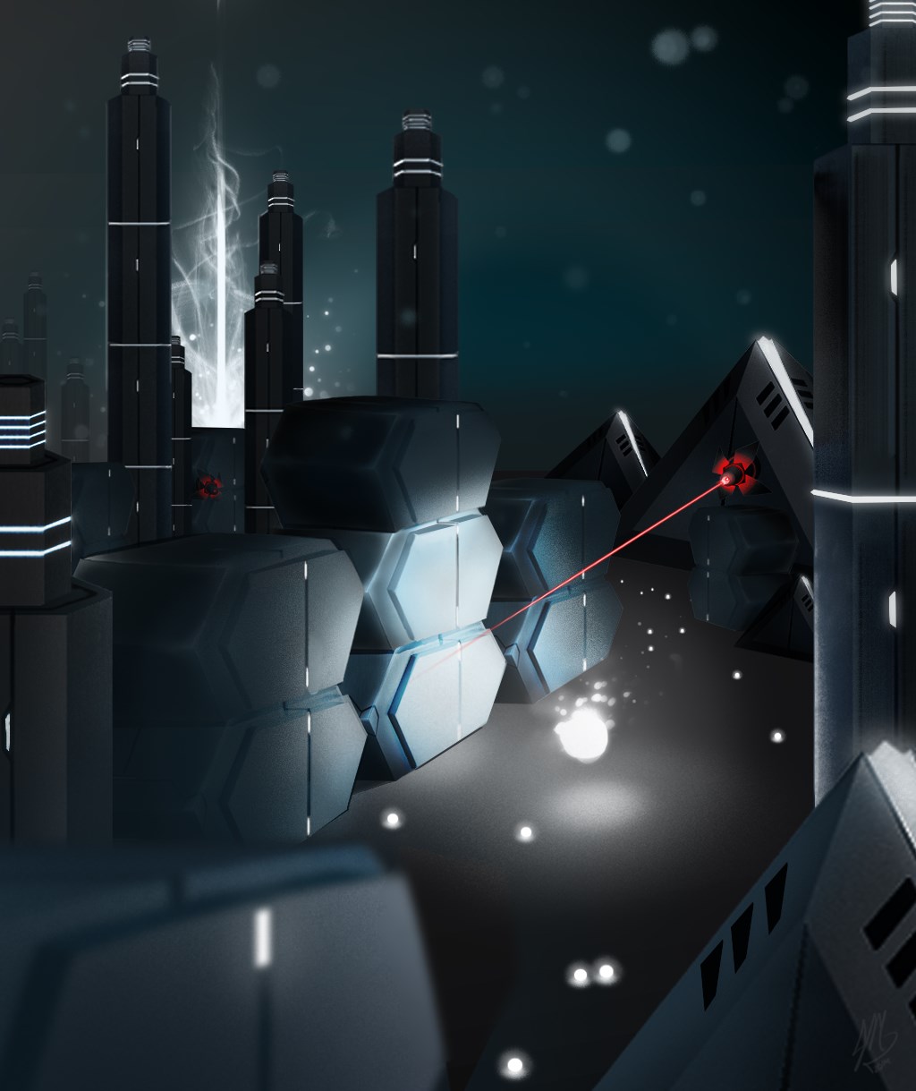 A concept from Particle Rush that was incorporated in the first prototype. The art leaves lots of space to construct a story around the locations in the game.